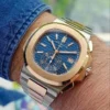 With the rounded octagonal shape of its bezel, the ingenious porthole construction of its case, and its horizontally embossed dial, the Nautilus has epitomized the elegant sports watch since 1976.