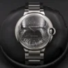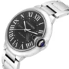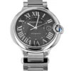Cartier Ballon Bleu stainless steel case with black guilloché dial with Roman numerals and date at 3 o’clock. Automatic movement. Comes with a Cartier stainless steel bracelet with deployant clasp. Fits 6-1/2″ wrists