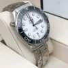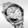 Made of stainless steel, this 42mm model features a black ceramic bezel and white enamel diving scale. The dial is crafted from polished white ceramic and features laser-engraved waves and a seahorse highlighted in red.