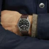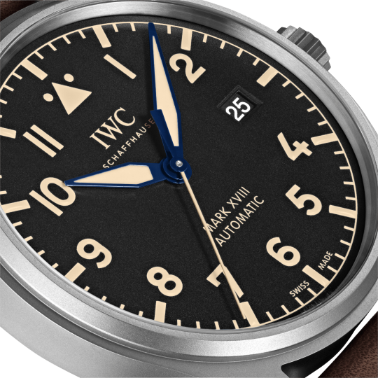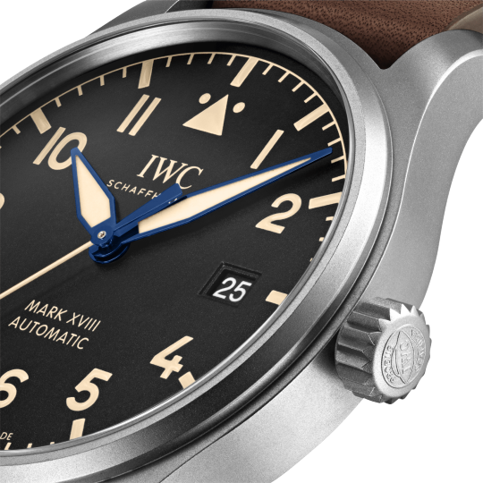 Titanium case, Automatic, self-winding, Diameter 40.0 mm, Black dial with luminescence, Brown calfskin strap, Strap width 20.0 mm.