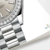 THIS OYSTER PERPETUAL LADY-DATEJUST IN 18 CT WHITE GOLD FEATURES A SILVER DIAL AND A PRESIDENT BRACELET.