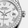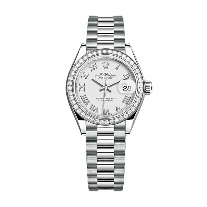 The light reflections on the case sides and lugs highlight the elegant profile of the?28 mm Oyster case, which is fitted with a?diamond-set bezel. Rolex’s classic feminine watch, the Lady-Datejust is in the lineage of the Datejust, the emblematic model that has been a byword for style and accurate timekeeping.