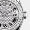 THIS OYSTER PERPETUAL LADY-DATEJUST IN 18 CT WHITE GOLD FEATURES A DIAMOND-PAVED DIAL AND A PRESIDENT BRACELET.