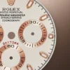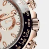 THIS OYSTER PERPETUAL COSMOGRAPH DAYTONA IN 18 KT EVEROSE GOLD WITH AN IVORY DIAL AND AN OYSTERFLEX BRACELET, FEATURES A BLACK CERACHROM BEZEL WITH TACHYMETRIC SCALE.