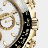 THIS OYSTER PERPETUAL COSMOGRAPH DAYTONA IN 18 CT YELLOW GOLD WITH A WHITE DIAL AND AN OYSTERFLEX BRACELET, FEATURES A BLACK CERACHROM BEZEL WITH TACHYMETRIC SCALE.