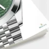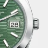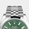 THIS OYSTER PERPETUAL DATEJUST 41 IN OYSTERSTEEL FEATURES A MINT GREEN, FLUTED-MOTIF DIAL AND A JUBILEE BRACELET.