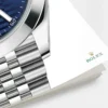 THIS OYSTER PERPETUAL DATEJUST 41 IN OYSTERSTEEL FEATURES A BRIGHT BLUE, FLUTED-MOTIF DIAL AND A JUBILEE BRACELET.