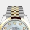THIS OYSTER PERPETUAL DATEJUST 41 IN OYSTERSTEEL AND YELLOW GOLD FEATURES A WHITE MOTHER-OF-PEARL, DIAMOND-SET DIAL AND A JUBILEE BRACELET.